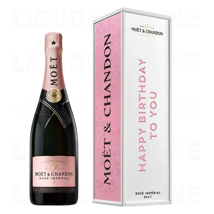 Give the gift of Mo?t & Chandon Ros? Imp?rial, which signifies a spontaneous, radiant, romantic expression of the Mo?t & Chandon style. This specific packaging allows for more message customization than the traditional Ros? Imp?rial bottle ? no need for a card when you have this bottle